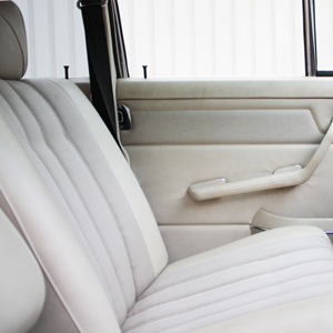 この車両は保管状態もよく、艶がなくなり白くなりがちなメッキモールも光沢を保っていますし、内装もとても綺麗な状態です。ボディも磨きをかけてピカピカに仕上げました。